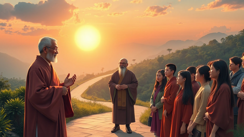 이미지 핵심 정보 : 지식 전달, 진리 탐구, 본질적 차이, 정신적 성장, 깨달음.