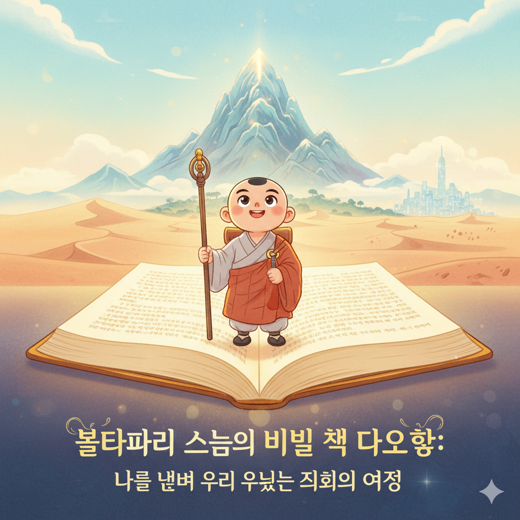 - 내용: 불타파리 스님의 여정을 따라가며 '내면의 평화', '자기 성찰', '자비심'을 키우는 명상 가이드. (예: "불타파리 스님처럼 나만의 비밀 책을 찾아 떠나는 여정을 상상해 봅니다...").
