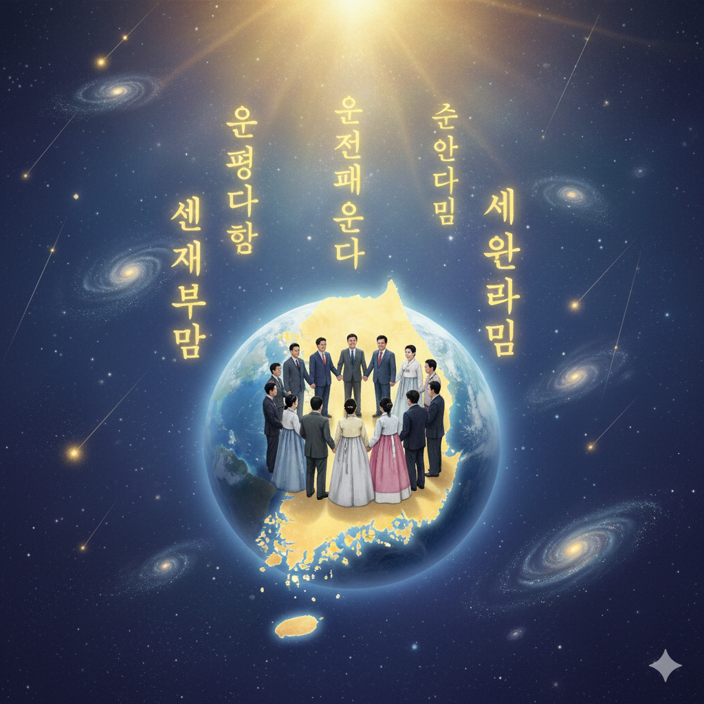 - 글로벌 상생의 리더십: 대한민국의 '홍익인간' 정신을 세계적으로 확장하여 인류공영에 이바지하는 정신적, 문화적 선도 국가로서의 역할을 수행하는 데 기여해야 합니다.