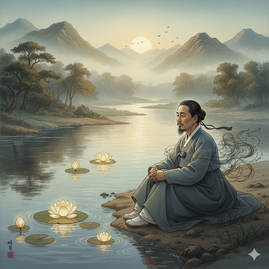 내용 요약: 이제는 '사회 부모'로서 우리 자신의 삶을 바르게 사는 '공부'를 시작해야 합니다. 과거의 누가 가르쳐주지 않아 몰랐던 부분을 탓하기보다는, 지금부터라도 한 땀 한 땀 바른 길을 찾아갈 때 깨달음과 지혜를 얻어 내면의 힘이 생긴다고 강조합니다. 조급함이나 과거의 문제에 매몰되지 않고, 오직 자신의 자리에서 '사회 부모'로서 책임감을 가지고 바르게 노력하면, 집안 줄로 내려오는 모든 탁한 기운과 문제는 자연스럽게 정리되며, 조상들은 해탈하고 후손들에게는 밝은 미래가 열릴 것이라는 희망적인 메시지를 전달합니다. 걱정하지 말고 꾸준히 실천하는 것이 가장 중요함을 재확인합니다. 이미지 생성 프롬프트: 고요한 동양화풍의 강가에서 단정하게 옷을 입은 '사회 부모'들이 나란히 서서 잔잔하게 흐르는 강물을 바라보고 있다. 강물 위로는 평화로운 연꽃들이 떠다니고, 멀리 보이는 산봉우리 위로는 맑고 밝은 빛이 비추고 있다. 그들의 얼굴에는 평온함과 함께 새로운 희망과 결의가 서려 있으며, 한 인물의 손에서는 따뜻한 빛이 나와 강물을 감싸는 듯하다. Image Prompt: By a tranquil East Asian-style river, neatly dressed "Social Parents" stand side-by-side, gazing at the gently flowing water. Peaceful lotus flowers drift on the river, and bright, clear light illuminates distant mountain peaks. Their faces show serenity, renewed hope, and resolve, as warm light emanates from one person's hand, seeming to embrace the river.
