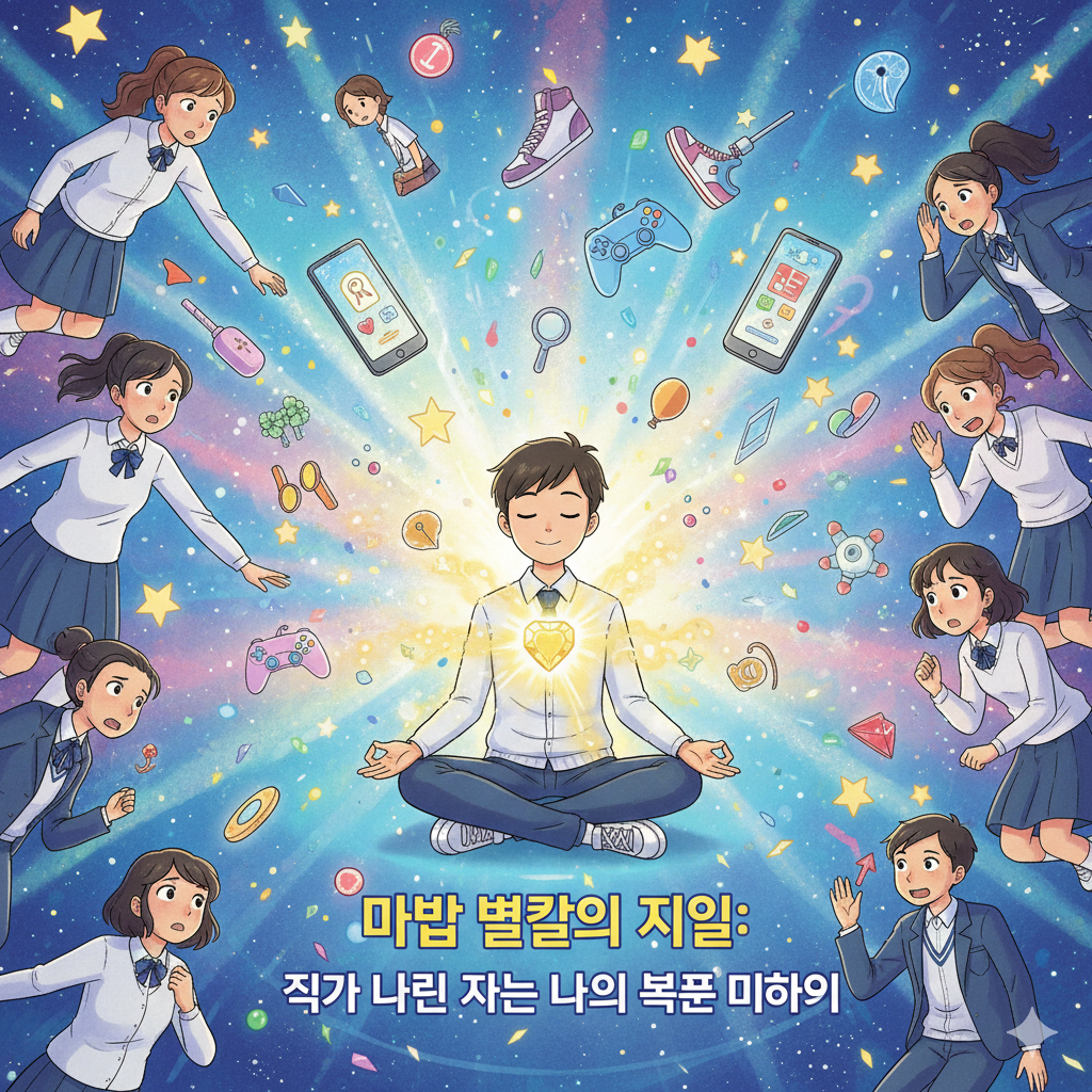 한글원문 (Original Korean): 안녕, 친구들! 오늘 우리가 이야기할 주인공은 바로 '너'와 '나'야. 혹시 SNS에서 친구들이 올린 사진을 보며 '와, 나도 저런 예쁜 옷 있으면 좋겠다!' 하거나, 게임 속 친구의 최고 레어 아이템을 보며 '저것만 있으면 나도 짱 멋진 게임 고수가 될 텐데!' 하고 부러워한 적 있니? 아니면 '저 친구처럼 공부 잘해서 칭찬받고 싶어!' 하고 속으로 외쳐 본 적은? 우리는 그 '멋져 보이는 것'들이 내 진짜 모습보다 중요하다고 생각할 때가 많아. 마치 옛날 이야기 속 한 친구가 직접 본 적도 없는 '마법 별칼'을 밤마다 꿈에서까지 좇았던 것처럼 말이야. 이 책은 너의 마음속 '마법 별칼'은 무엇인지, 그리고 그 별칼보다 훨씬 더 반짝이는 '진짜 너'를 어떻게 찾을 수 있는지 알려주는 비밀 지도가 될 거야.