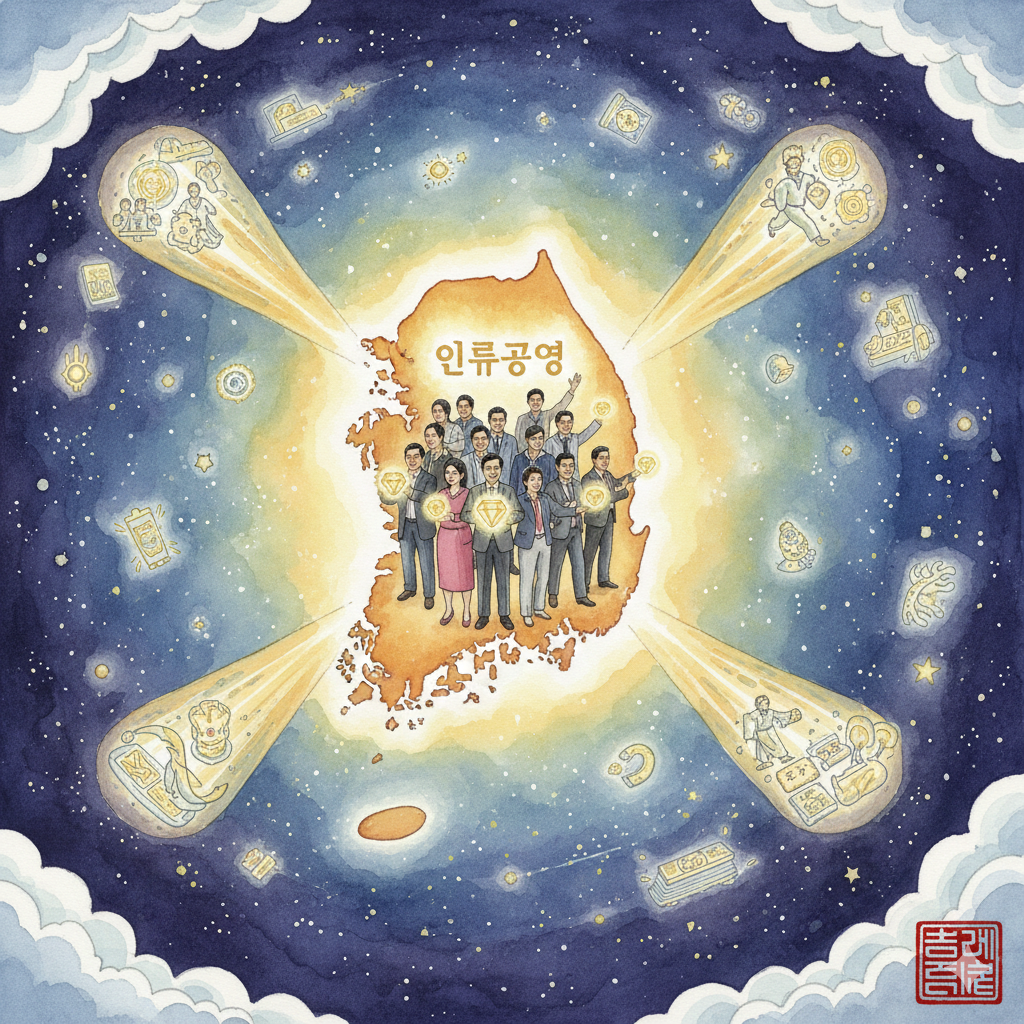 이 강의는 우리가 겪는 어려움을 무서워하지 않고, 오히려 그걸 통해 더 지혜롭고 강하게 자라나는 '성장 미션'으로 바꾸라고 격려해 줘요. 또, 우리 조상들의 역사와 문화를 새로운 시각으로 보고, 미래에 우리 대한민국이 '따뜻한 마음(덕)'으로 세상을 이끌 '평화 히어로'가 될 거라는 큰 꿈을 심어주죠.