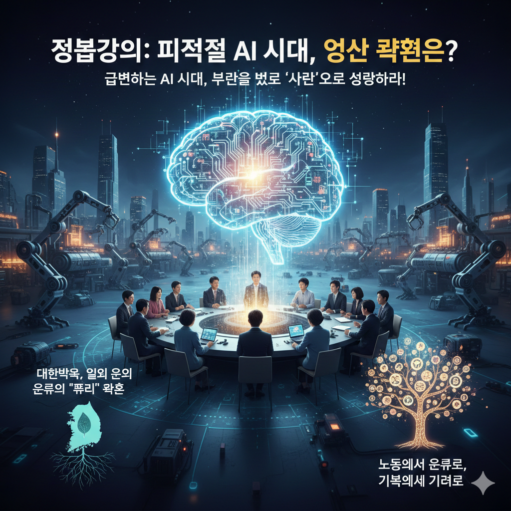 스승님의 이번 강의는 피지컬 AI 시대라는 현실적 변화를 통해 인류 문명의 거대한 전환점을 철학적, 존재론적 관점에서 해석합니다. 단순히 기술 발전에 따른 일자리 문제를 넘어, 인간의 본질과 역할에 대한 근본적인 재정의를 시도하는 것이 핵심입니다.