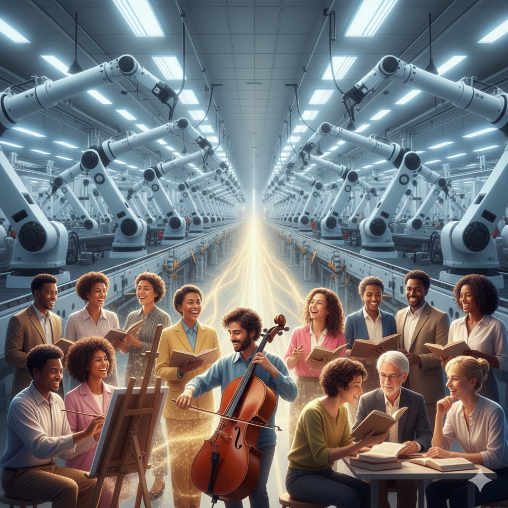 AI와 로봇이 육체적/반복적 노동을 대체하면서, 인간의 '노동'에 대한 가치는 재정의됩니다. 스승님은 과거 '동물이 하던 일'이 이제 '기계가 할 일'이 되었다고 단언하며, 인간은 그로부터 해방되어 '문화 활동'에 몰두해야 한다고 말합니다. 여기서 '문화 활동'은 단순한 예술이나 오락이 아닌, 정치, 경제, 기업, 가정 등 삶의 모든 영역에서 품격과 지혜를 더하는 창조적인 행위를 포괄합니다. 이는 AI 시대에 인간의 시간이 확보됨에 따라, 우리 삶의 에너지를 어디에 집중해야 할지에 대한 명확한 지침이자, 새로운 문명 질서를 위한 가치관의 전환을 요구하는 메시지입니다.