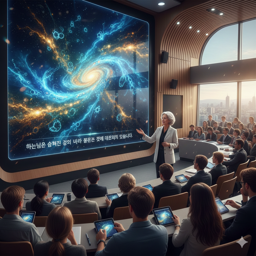 - 강의에서 비유된 ‘세포 하나가 하느님’이라는 말은 모든 존재가 분절된 듯 보이나 실상은 거대한 하나의 생명과 에너지의 연결점임을 뜻한다. 마치 손가락 끝 하나하나가 전체 몸과 연결되듯, 우주의 세포와 입자들은 모두 신성의 몸체로서 운용되고 있다. 이는 개인과 우주가 분리된 것이 아니라 미묘한 관계로 엮여 있다는 현대 물리학의 연속선상에서 깊은 의미를 가진다. “오픈”이란 단어는 신이 감춰져 있지 않고 드러나 있음을, 그리고 인간이 자유롭게 그 힘을 쓸 수 있음을 상징한다. 이 같은 연결과 내재성 인식이 우리에게 공존과 조화의 삶으로 나아갈 방향을 제시한다.