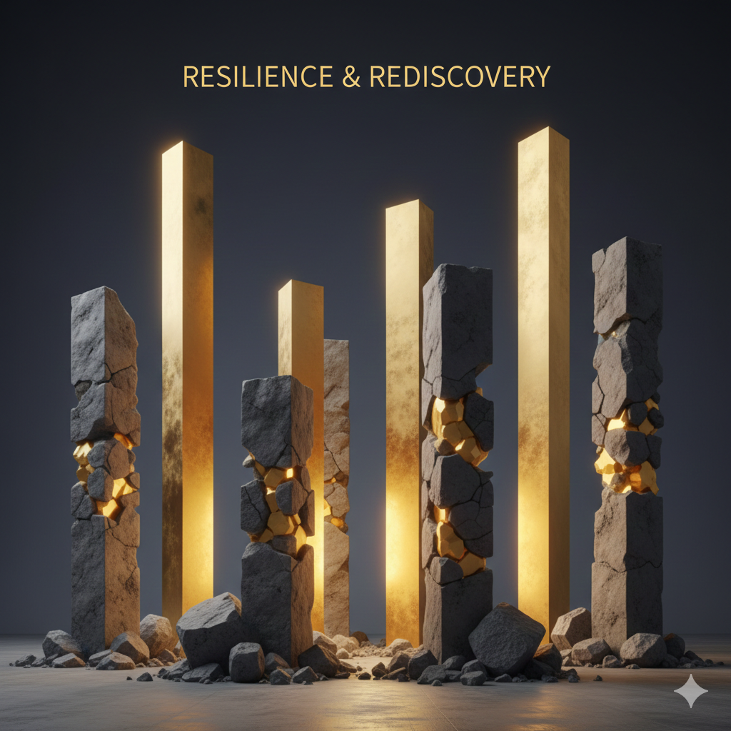 - 부서진 틈 사이로 빛이 들어오는 법(킨츠기 철학 접목).