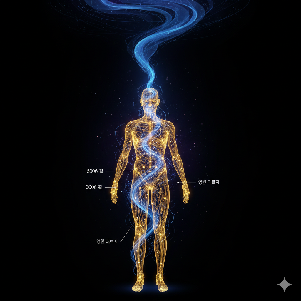 - 확대 해설: 인간의 육신은 단순한 유기체가 아니라, 6006개의 정교한 수신기를 갖춘 '영적 아바타'입니다. 억겁의 진화를 거쳐 이 고도의 하드웨어가 완성되었을 때, 비로소 우리의 영혼 에너지가 '접속(Login)'에 성공한 것입니다.