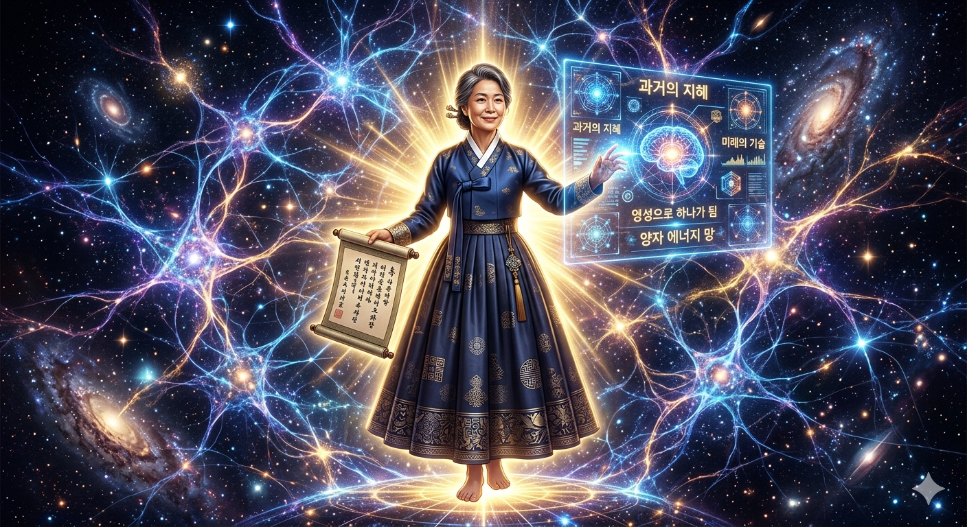(힌트: 보이지 않는 마음과 지식의 에너지를 과학적 용어와 연결하셨습니다.)